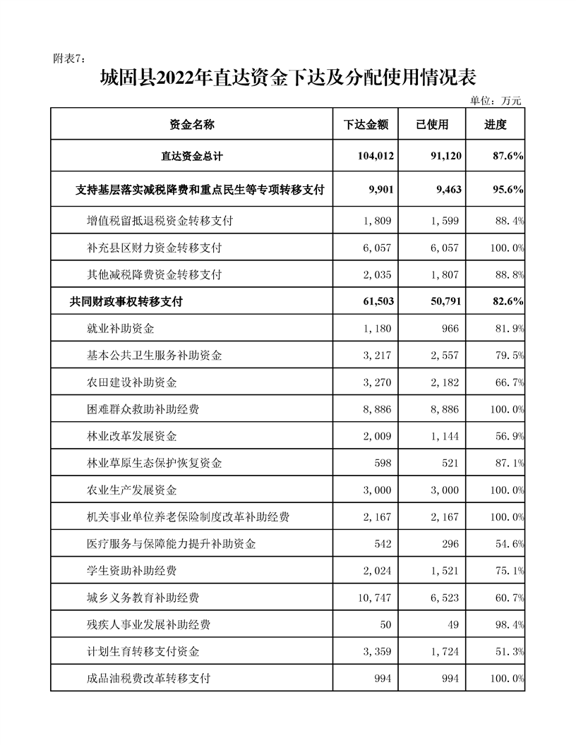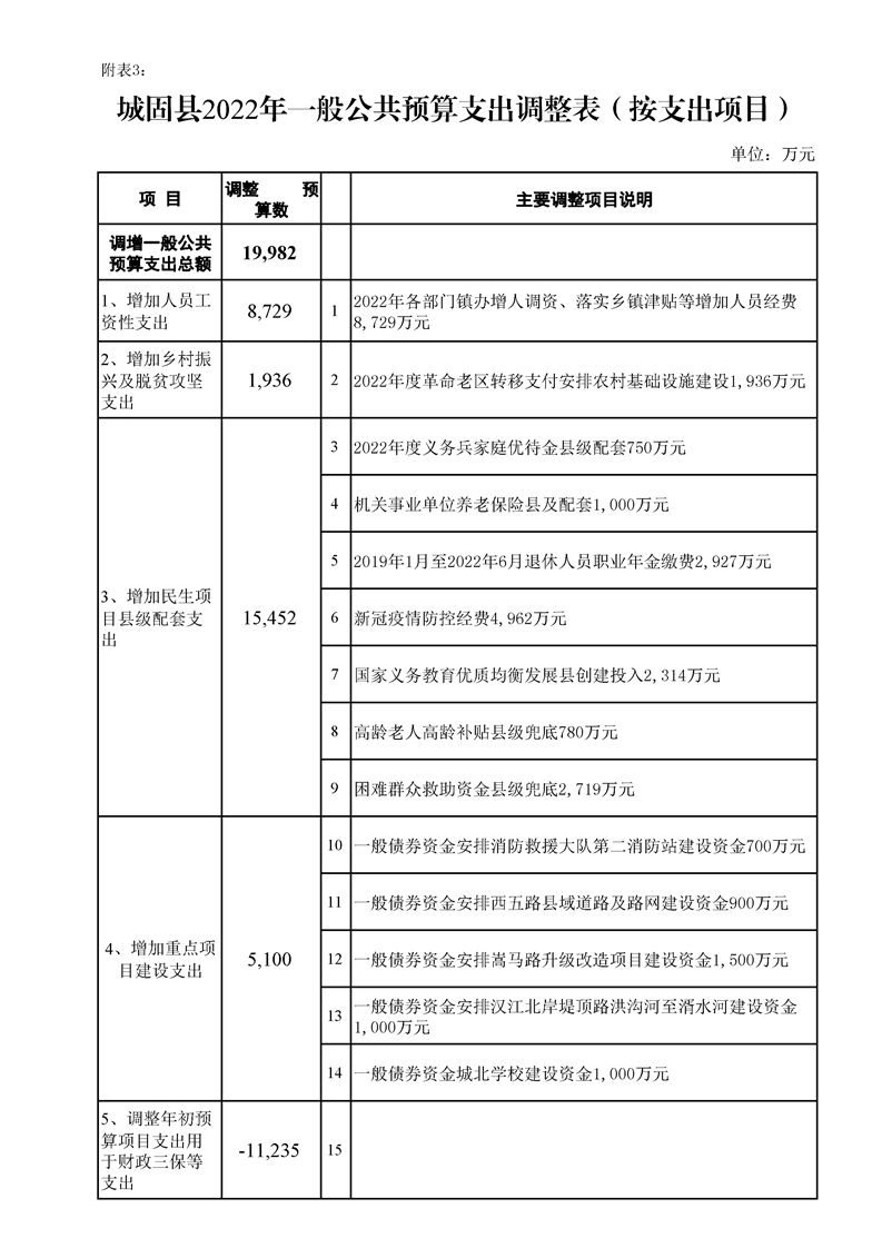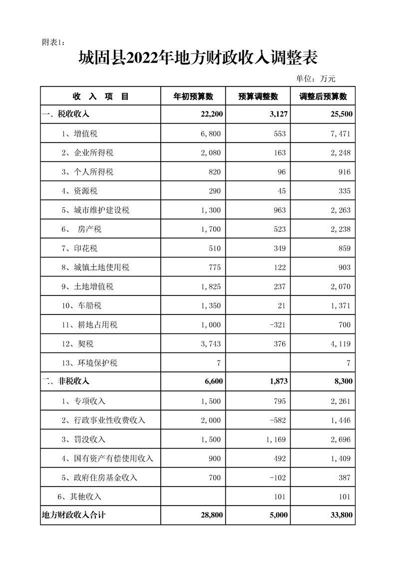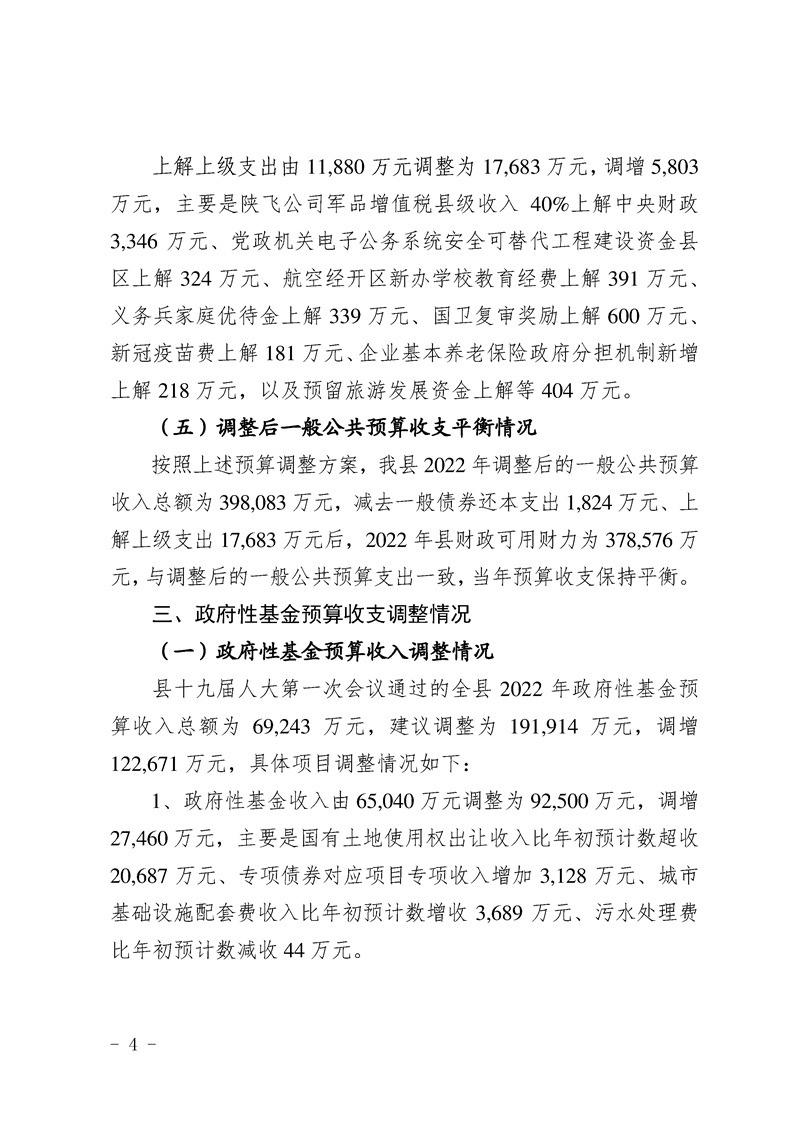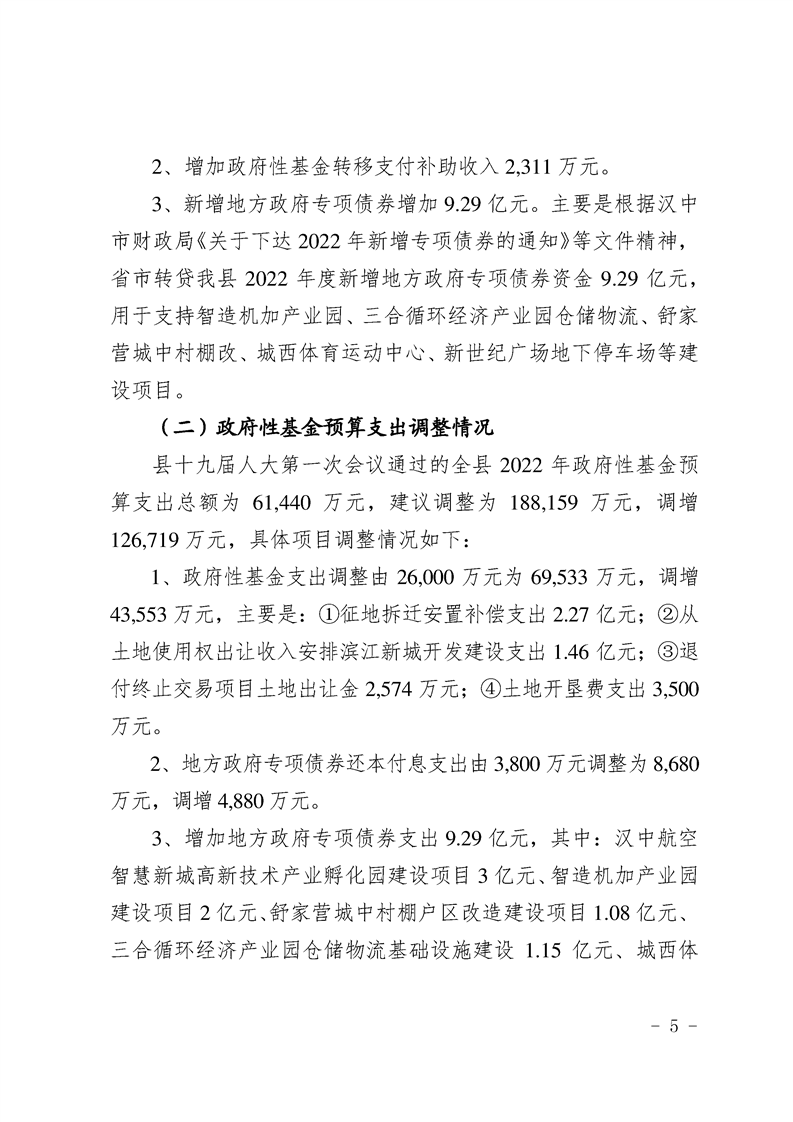 城固县2022年预算调整方案(草案)