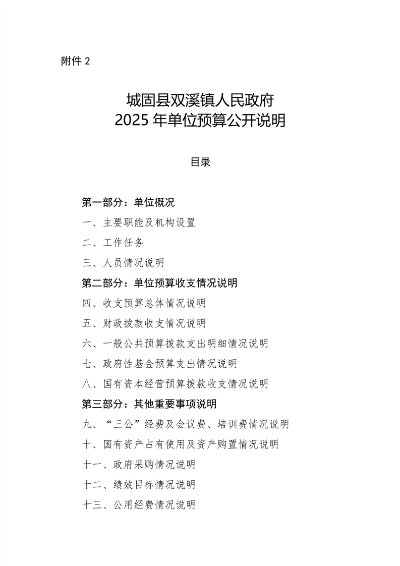 城固县双溪镇人民政府2025年所属单位预算公开说明