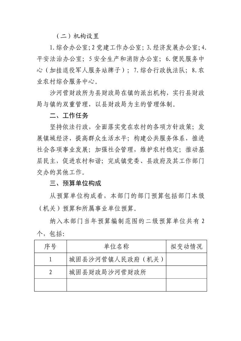 城固县沙河营镇人民政府2025年部门预算公开说明