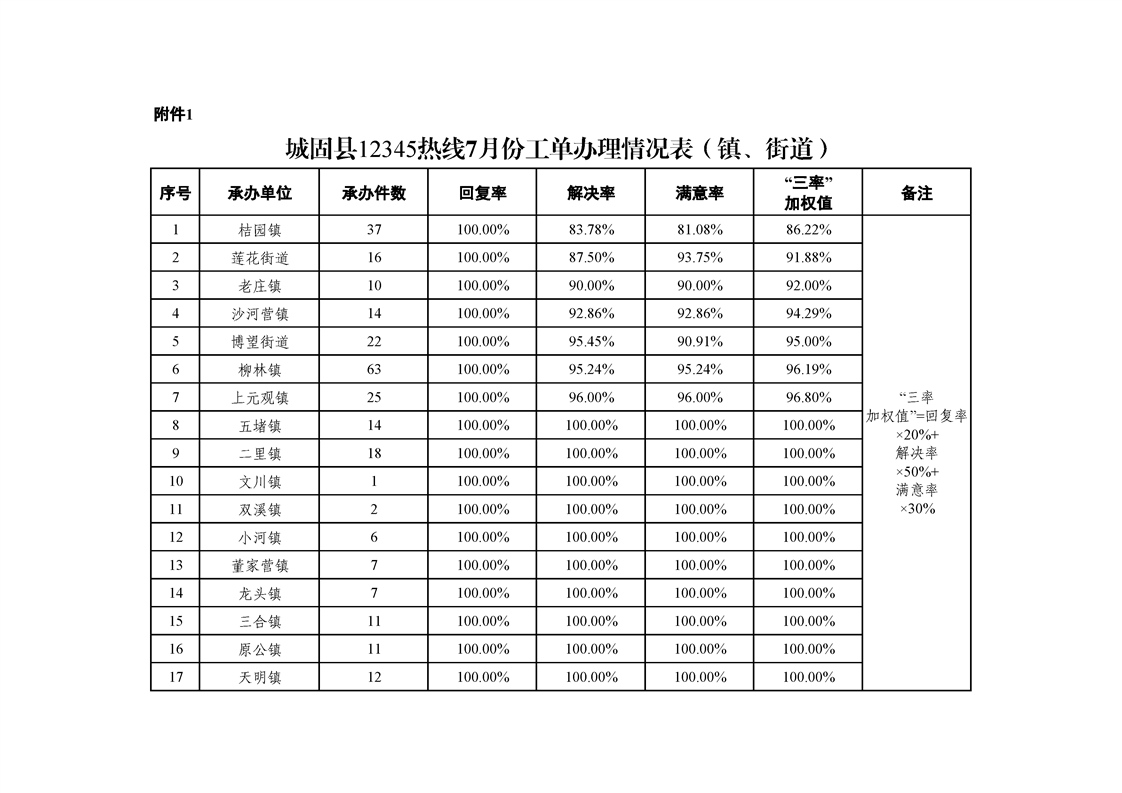 城固县12345热线7月份工单办理情况表(镇、街道)