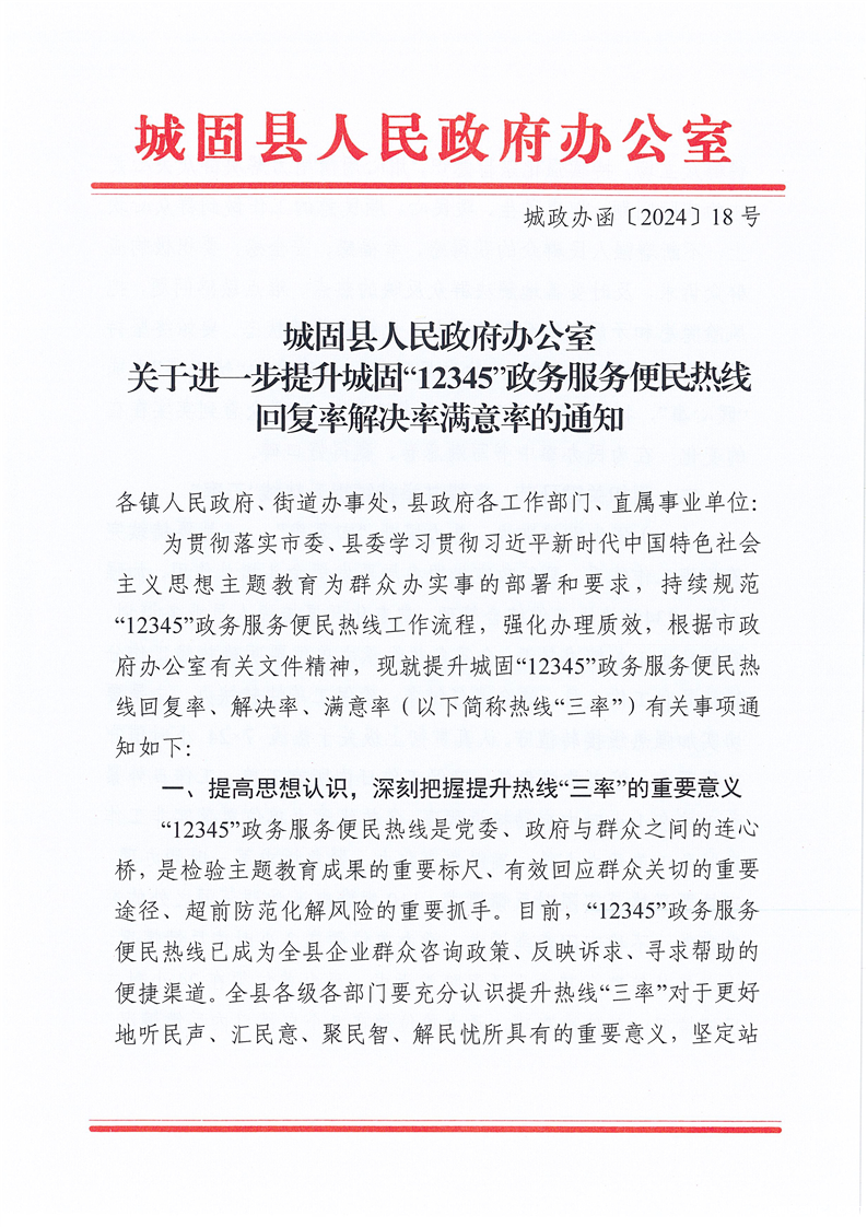 米兰·(milan)中国官方网站办公室关于进一步提升城固“12345”政务服务便民热线回复率解决率满意率的通知